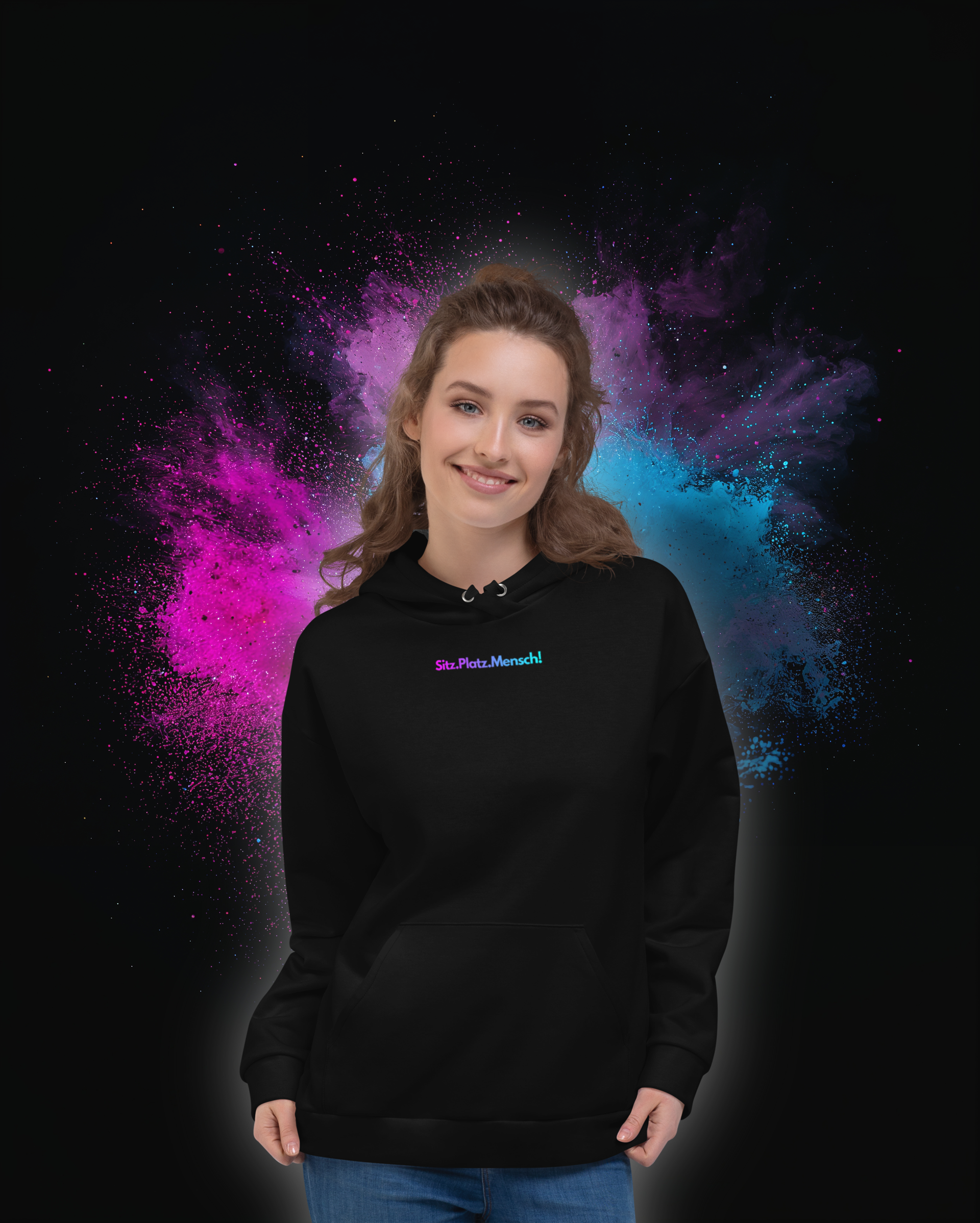 Schwarzer Unisex-Kapuzenpullover im modernen Sitz.Platz! Design von DeineHundetrainer.de